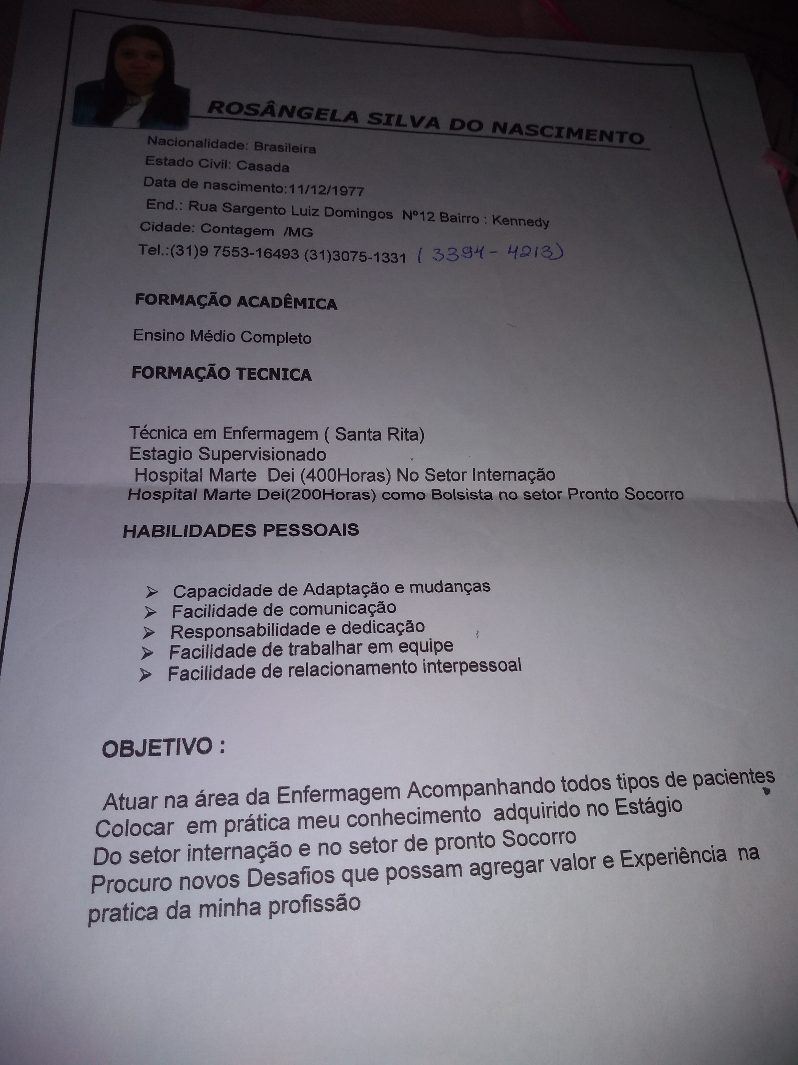 Para contato com o candidato por email rosangelanascentosilva@bol.com.br